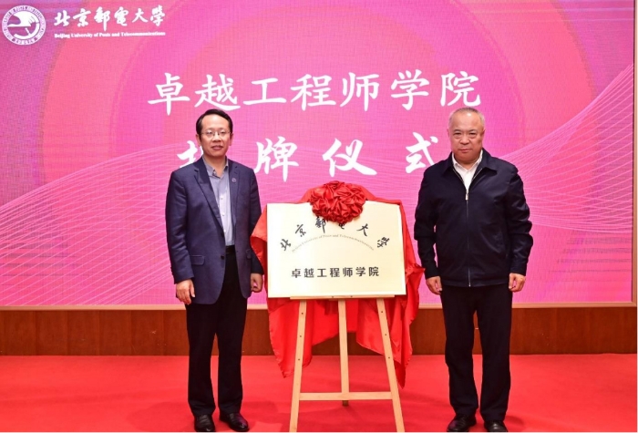 续梅宣布北京邮电大学卓越工程师学院正式成立,并宣布学院理事会企业方理事长单位为中国星网集团有限公司。张冬辰、徐坤共同为学院揭牌。