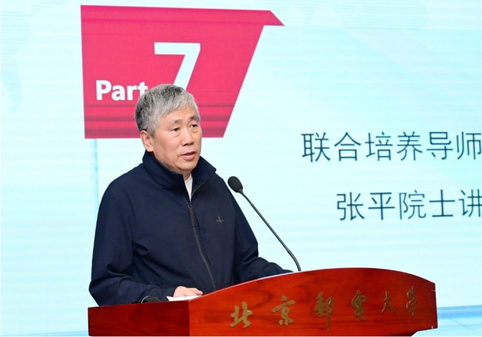 张平院士作为校企联合培养研究生的导师代表讲话,期望学院坚持高质量教学标准,打造高素质师资队伍,整合优势校企资源,精准把握卓越人才培养的规律,精确识别产业需求,发挥好在高等工程教育改革中的带动示范作用。张平表示,学院应不断强化自主前瞻布局,推进有组织的基础研究和自由探索,鼓励学生开展原创性、颠覆性、引领性的重大基础研究,努力成为中国新工科教育探路者,为国家和产业发展提供重要人才支撑。
