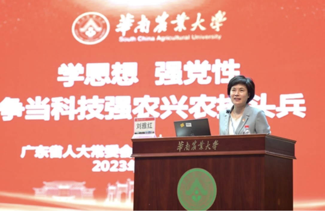 为深入开展学习贯彻习近平新时代中国特色社会主义思想主题教育,教育引导广大学生党员强化理论学习,更好做到“学思用贯通、知信行统一”,5月19日上午,党的二十大代表、华南农业大学校长刘雅红在丁颖礼堂为700余名学生党员讲授题为《学思想 强党性 争当科技强农兴农排头兵》的专题党课。省委第十九巡回指导组组长刘海陵列席指导。校党委副书记邓国安主持专题党课。