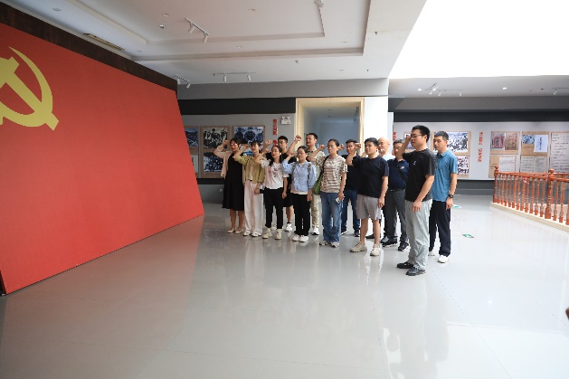 参观学习后,全体党员在纪念馆的宣誓墙前整齐列队,举行了庄重的“重温入党誓词”仪式。在副院长杨蒙蒙同志的带领下,全体党员面向鲜红的党旗,高举右拳:“我志愿加入中国共产党……随时准备为党和人民牺牲一切,永不叛党。”铿锵有力的誓词回荡在纪念馆上空,宣示着党员们不忘初心、牢记使命,为党的事业和科技强国建设不懈奋斗的坚定决心。