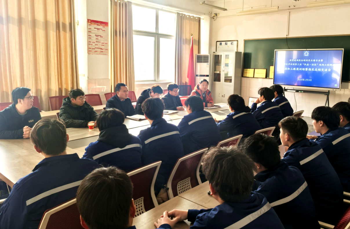 为高质量推进新型玻璃装备智能制造技术省级微专业暨第三届“凯盛·强技”班跟岗训练教学计划,机电工程学院在4401会议室召开第三届“凯盛·强技”班数控加工跟岗训练暨期末总结交流会,机电工程学院党总支书记、院长郝志廷,副院长乔志杰,党总支副书记赵世同出席会议,跟岗训练企业导师和全体学生参加会议。会议由智能制造教研室主任查正卫主持。
