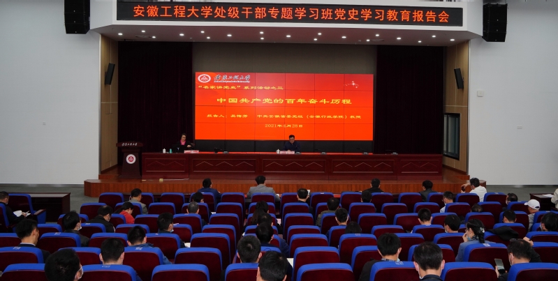 4月28日下午,中共安徽省委党校(安徽行政学院)教授、省委讲师团专家库高端宣讲专家、省直工委讲师团成员吴梅芳应邀来校开展题为“中国共产党的百年奋斗历程”专题报告。报告会由校党委常委、宣传部(统战部)部长、马克思主义学院党总支书记孙浩然主持。学校处级干部专题教育学习培训班成员,马院全体师生,学校各学院研究生代表参加会议。