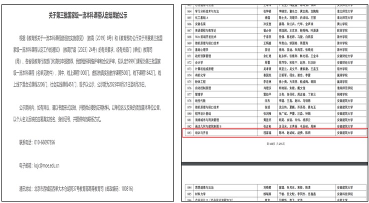 近日,教育部公示第三批国家级一流本科课程认定结果,人社系教师党支部教师程家福、陈坤、赵斌斌、赵勇、陈雨教学团队建设的《培训与开发》课程成功入选。