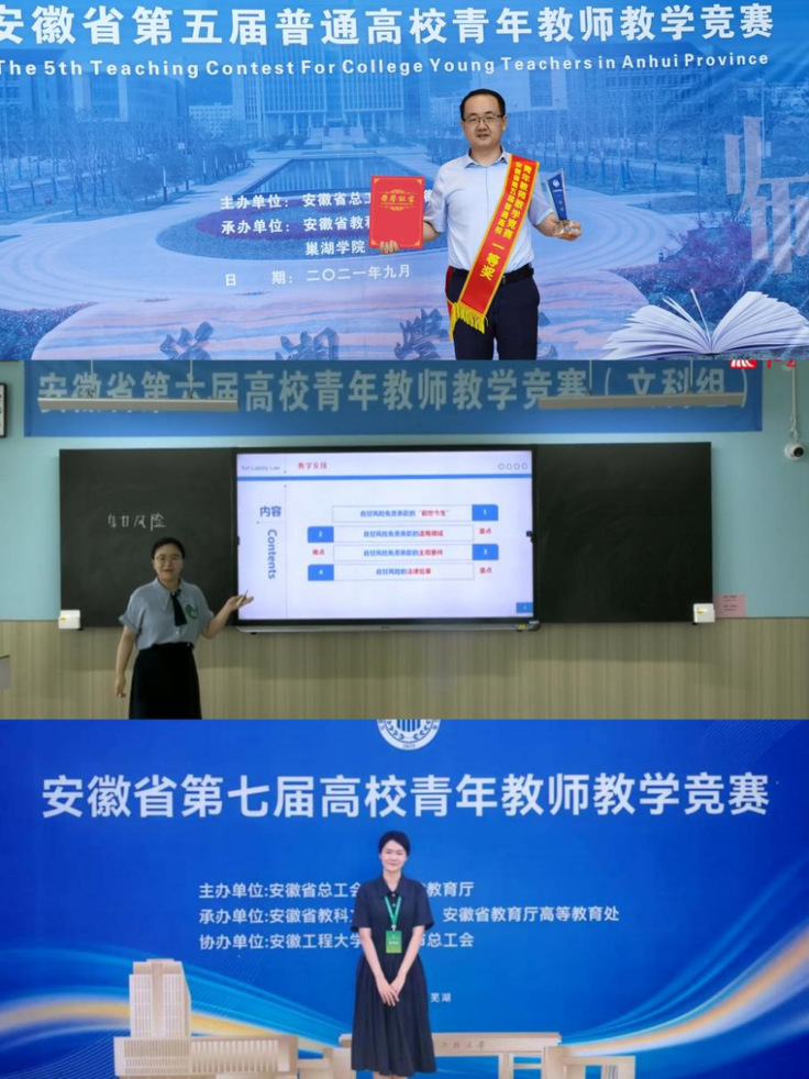 以教学创新比赛为契机,邀请校内外专家组建“专家团”传帮带,为教师提供从理念更新、设计优化到展示演练的系统指导。通过专题研讨、跨校交流、模拟答辩等形式,拓展教师教学创新视野,夯实教改实践基础。在2025年教学创新比赛中,学院教师团队凭借扎实的创新设计与沉稳的现场表现,荣获全国二等奖1项、三等奖1项,以及安徽省一等奖3项、二等奖1项。不仅大幅提升教师的教学创新能力,更反哺课程建设与教学模式改革,为学科专业建设与发展注入持续动能。