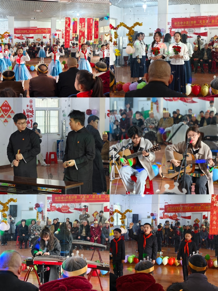雷锋精神不仅是宝贵的精神品质,更是代代相传的文明火种。一场精彩的文艺汇演让孩子们、大学生们和社区老人们欢聚一堂,以‘一老一小’为桥梁,让长者们在欢歌笑语中感受温暖,让青年们在服务中感悟责任。演出在孩子们欢快的舞蹈《一颗小树苗》中拉开帷幕。他们用俏皮的肢体语言,生动演绎了小树苗在阳光雨露中茁壮成长的过程。随后数理学院的大学生志愿者与小学生们轮番上阵,为现场的观众奉献了一个又一个精彩节目。《少年中国说》稚嫩却坚定的童声传递着新时代少年的理想与担当,诠释着“少年强则国强” 的拳拳赤子心;合唱《先锋少年》将演出推向高潮,孩子们身着整齐服装,胸前红领巾格外鲜艳,用清澈嘹亮的嗓音,有力的手势动作,深情演绎了争当先锋的铮铮志向;“请党放心,强国有我” 的豪迈宣言,引得台下阵阵掌声;大学生们带来的女生合唱《映山红》惊艳登场,动人心弦;古筝独奏《战台风》将传统乐器的文化魅力展现得淋漓尽致;相声《我要做好人》以诙谐幽默的表演引发全场阵阵欢笑,在轻松愉悦的氛围中传递着向上向善的正能量。