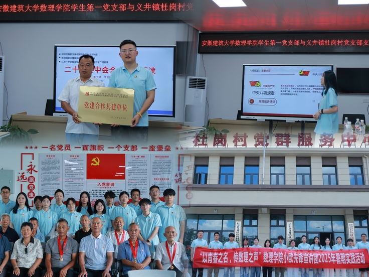 本网讯 为深入学习贯彻党的二十大、二十届三中全会精神,充分发挥共青团实践育人功能,引导大学生服务社会、服务基层,为乡村振兴注入青春力量,近期,数理学院组织学生参加2025年安徽省大学生暑期“三下乡”社会实践长丰专项活动。此次活动,学院共组建乡村振兴长丰专项服务团和数理“小欧”学习宣讲服务团两个实践团队,围绕参观学习、乡村振兴、志愿服务、社会调研等开展社会实践。