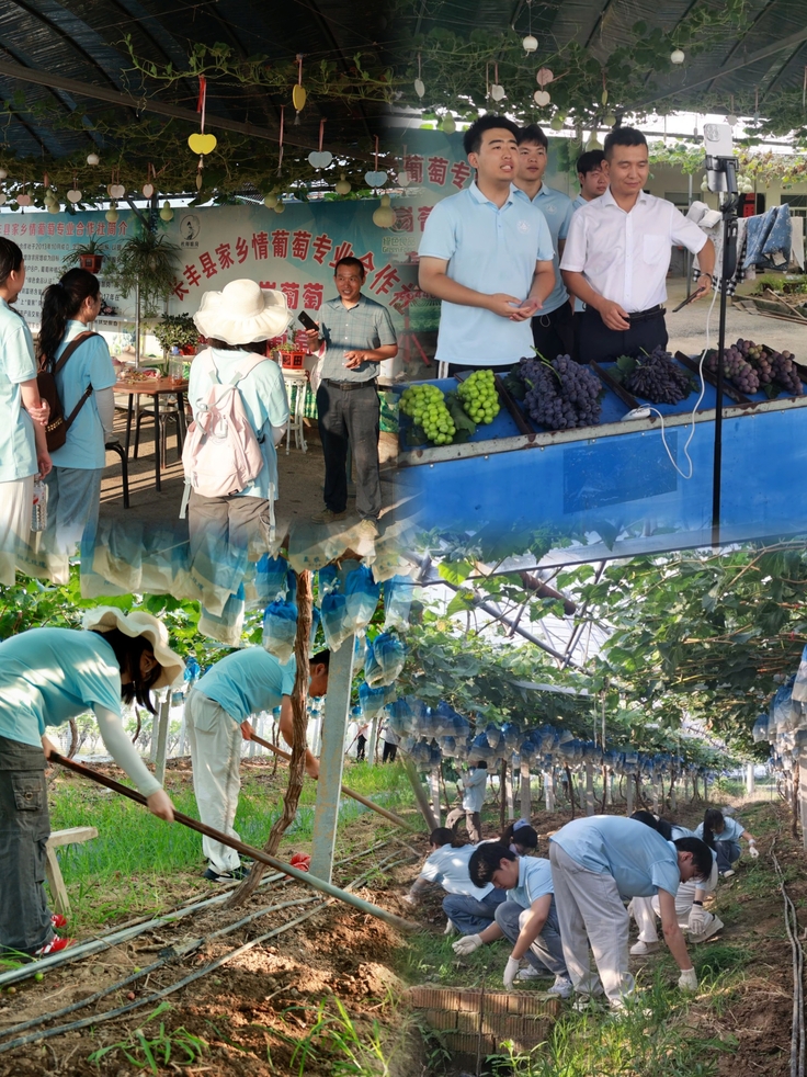 炎炎夏日,长丰县义井镇杜岗村数百亩葡萄园里硕果丰盈,生机勃勃。学院乡村振兴长丰专项服务团深入田间地头,用知识与汗水汇聚乡村振兴青春动能。师生们深入葡萄园,积极投入农事劳动。施肥、除草、整理、包装、装盒一气呵成。汗水浸透衣衫,双手沾满泥土,数理学子们在躬身实践中真切体会到农业生产的辛劳与智慧。