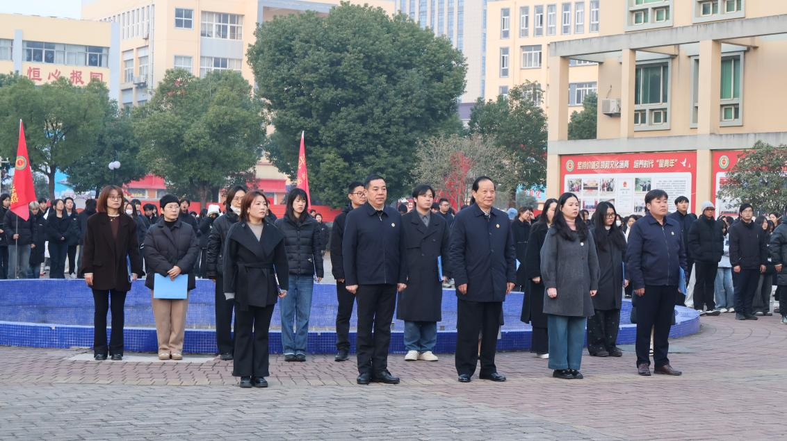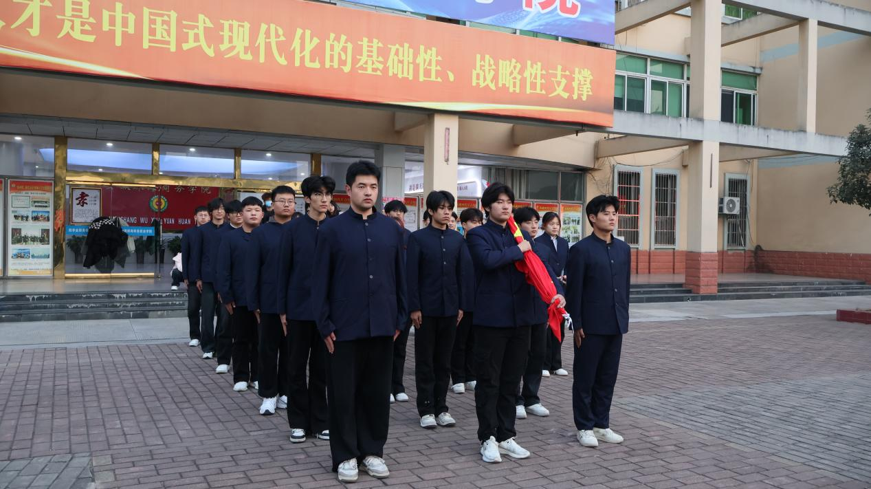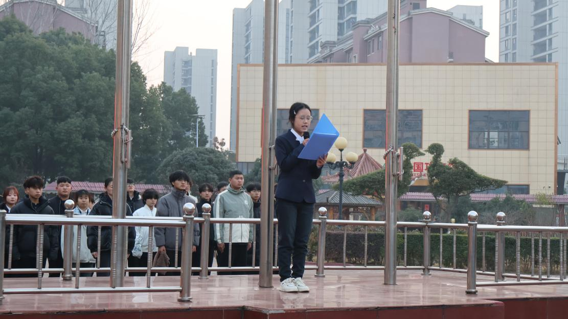 伴随着激昂的旋律,国旗护卫队迈着铿锵有力的步伐,昂首挺胸护送五星红旗走向升旗台。他们身姿挺拔、神情肃穆,每一步都承载着对国旗的崇敬与对祖国的赤诚。在全场师生的注目下,鲜艳的五星红旗冉冉升起,飘扬在广场上空。全体人员肃立致敬,高唱国歌,激昂的歌声回荡在校园,爱国之情与奋斗之志在每个人心中激荡。