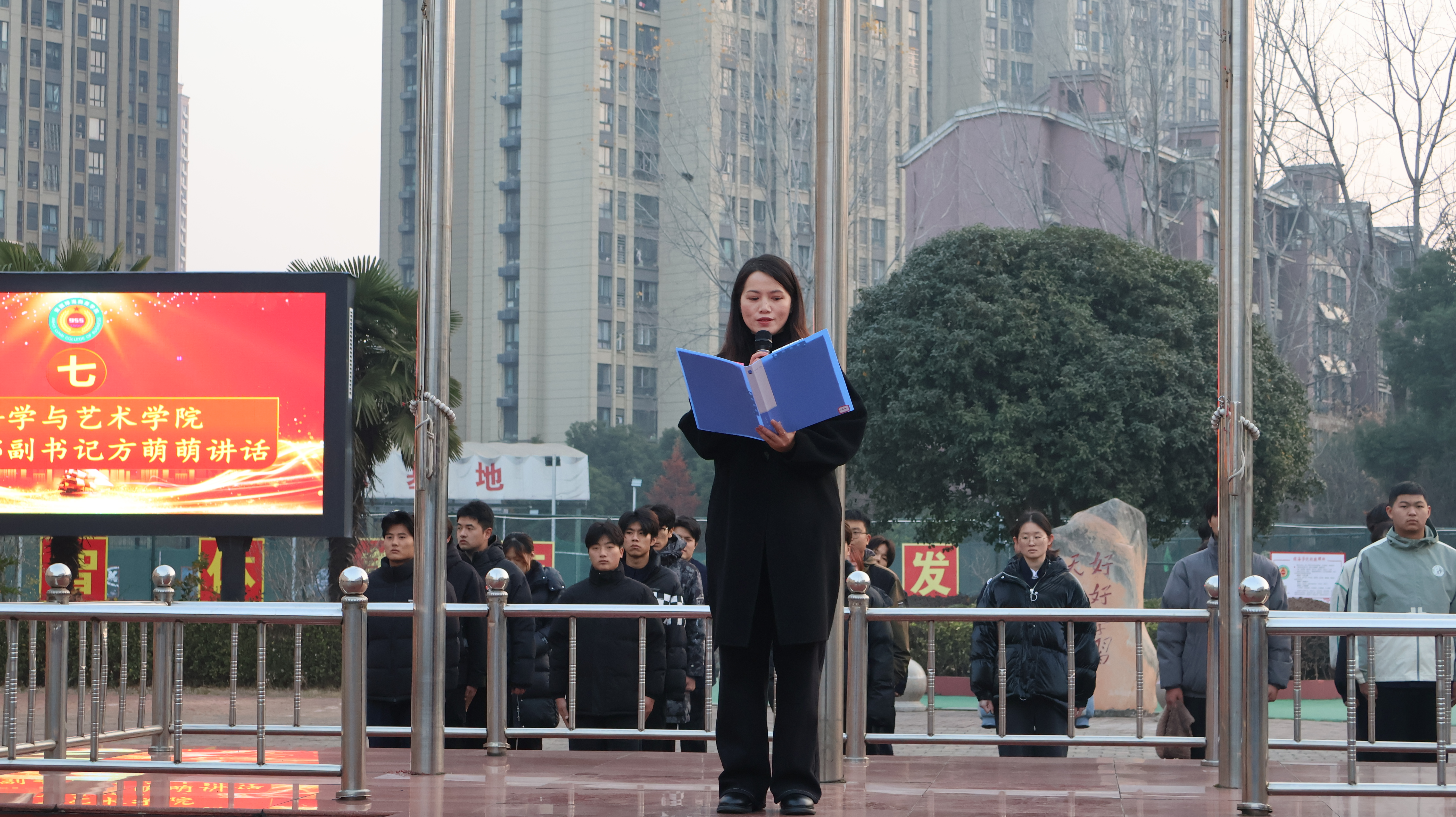 学院党支部副书记方萌萌发表讲话。她首先向全体师生致以问候,肯定了学院师生在过往各项工作中取得的成绩,并围绕“爱国、自强、担当、闪光”的星青年精神内涵,对同学们提出殷切期望。她鼓励同学们以“星青年文化”为精神航标,以“一二三四五”工程为行动指引,在知行合一中锤炼过硬本领,在实干奋进中诠释青春担当,成长为有理想、敢担当、能吃苦、肯奋斗的新时代青年,不负韶华、不负时代。