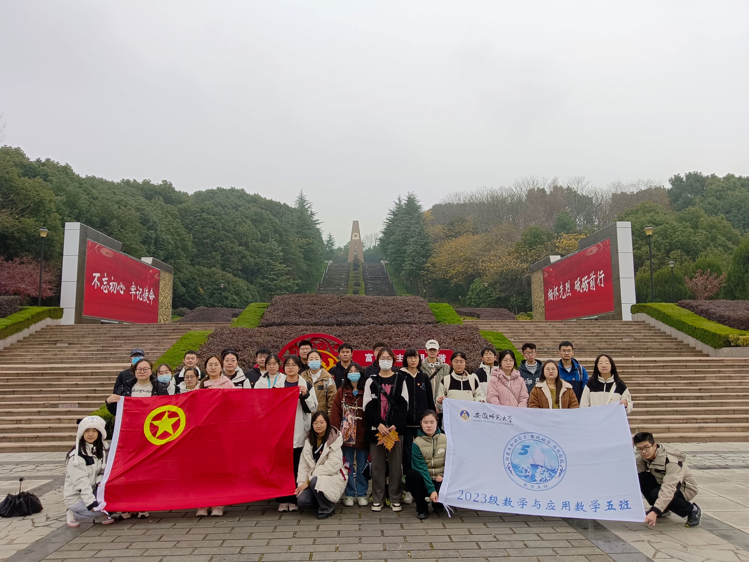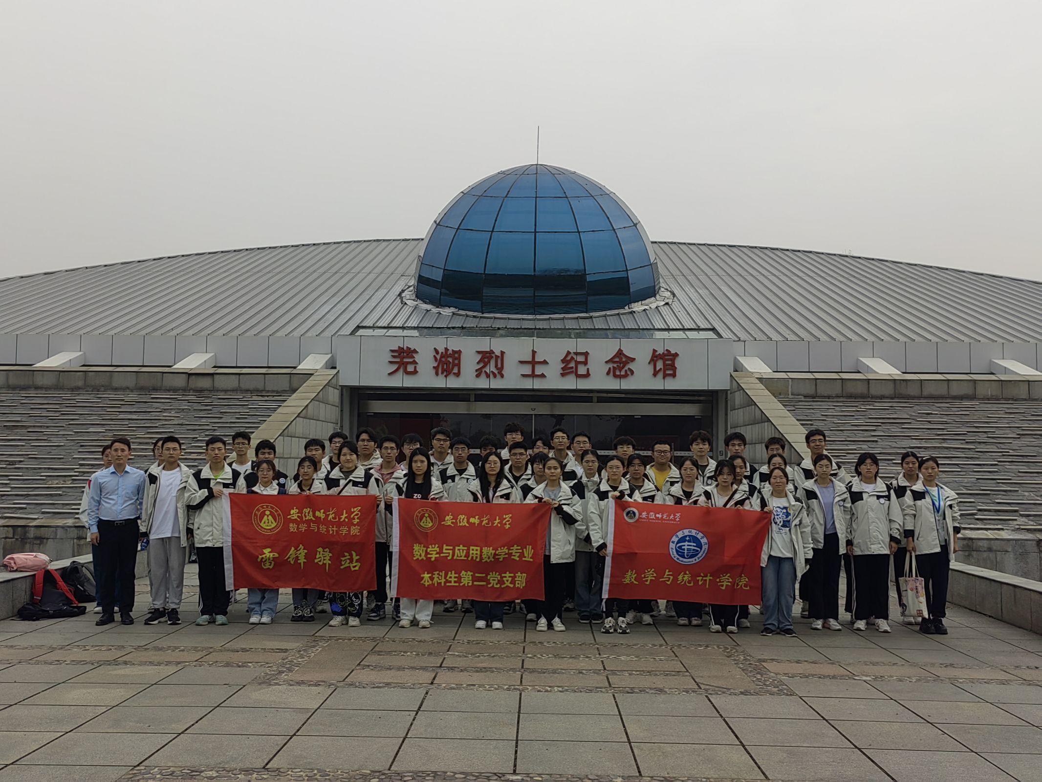 参加一次“红色教育”,接受精神洗礼。联合全国党建工作样板支部-数学与应用数学专业本科生第二党支部和“一站式”学生社区-“零壹”社区共同赴芜湖烈士陵园、王稼祥纪念馆等地,开展“致敬英烈,吾辈自强”主题教育活动;集体参观芜湖烈士纪念馆,一幅幅照片、一件件实物、一块块展板,无不诉说着往昔峥嵘的革命岁月,无一不透露着革命先烈们为了民族独立和人民幸福所付出的巨大牺牲,同学们且行且看,更加坚定了为社会的和谐稳定与繁荣发展做出贡献的理想信念。