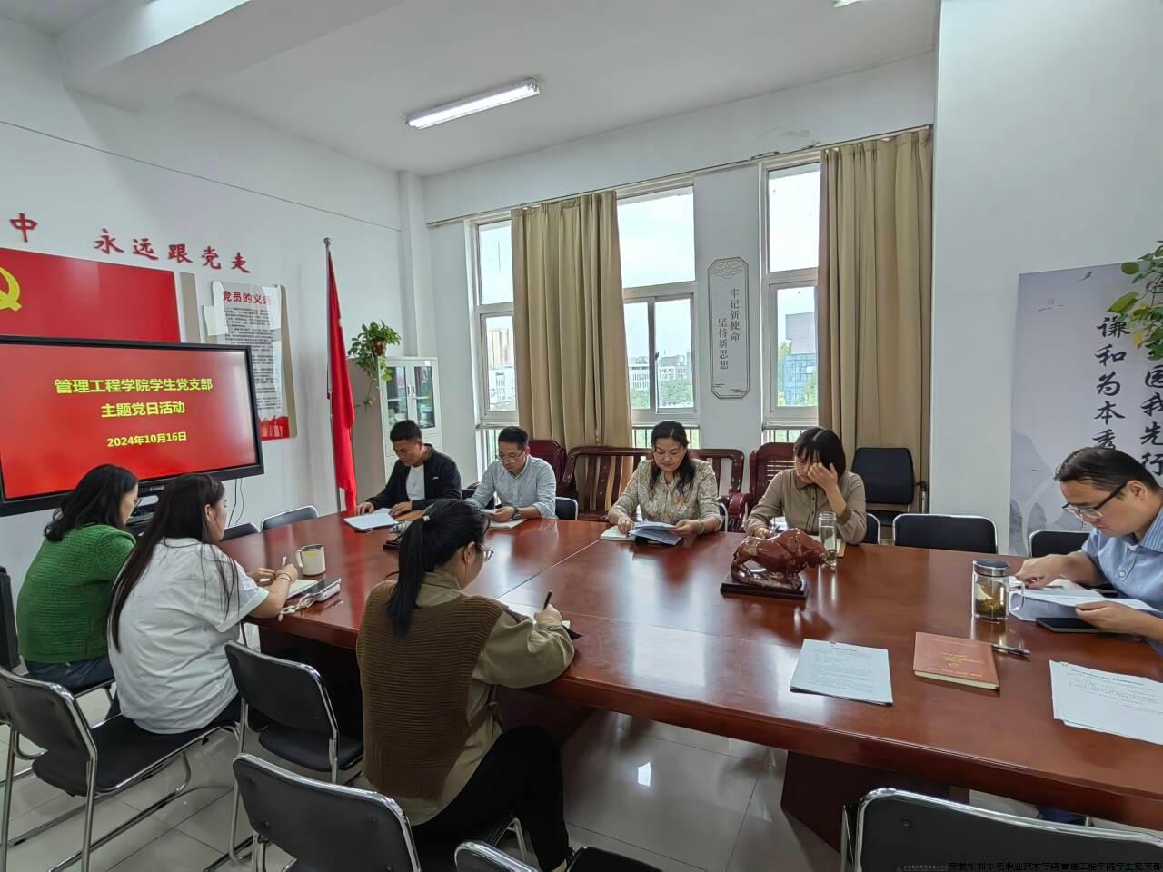 2024年10月16日下午,安徽水利水电职业技术学院管理工程学院学生党支部在知行楼党员活动室开展“筑牢安全意识,增强安全防线”主题党日活动。