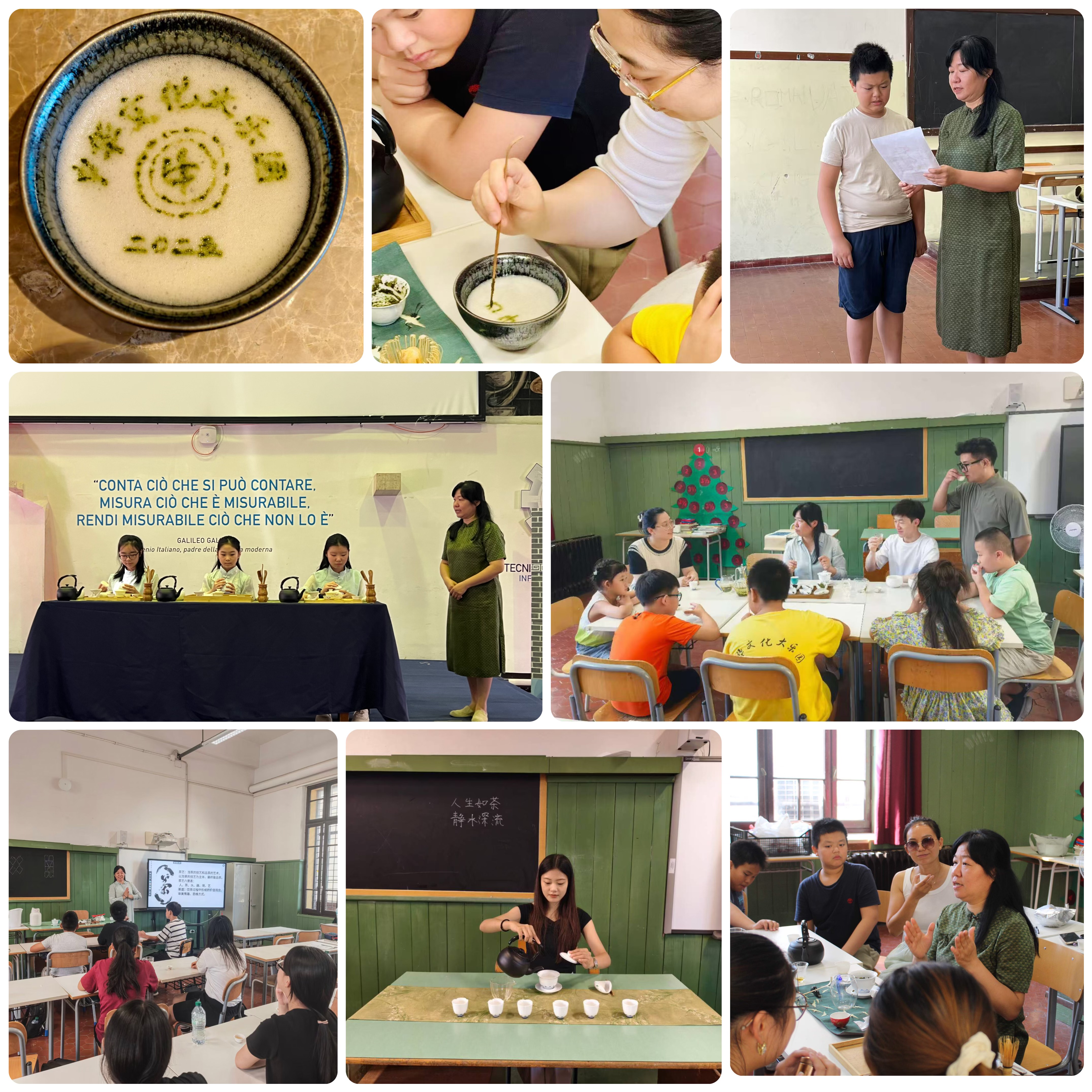 在为期12天的教学活动中,两位老师全身心投入,用专业与热情诠释着中华文化的魅力。孙莉老师的茶艺课堂宛如一场优雅的东方雅集。她精心准备每一堂课,从茶叶的起源、种类,到泡茶的器具、手法,再到品茶的礼仪、心境,都进行了细致入微的讲解。课堂上,她亲自示范,举手投足间尽显优雅,让意大利的学生们领略到了中国茶文化的博大精深。学生们围坐在茶桌旁,好奇地学习着每一个步骤,从最初的生疏到逐渐熟练,他们在茶香中感受着中华文化的独特韵味,许多家长与老师也加入了茶艺课堂旁听学习。课程结束后,她们纷纷表示孙莉老师知识面广,课程内容丰富。闭营式上学生们精彩演绎了《诗词上的茶香》,结合中国诗词来讲解中国茶文化,令人耳目一新,茶艺动作美与诗词韵律美的交相呼应给大家留下了深刻的印象。