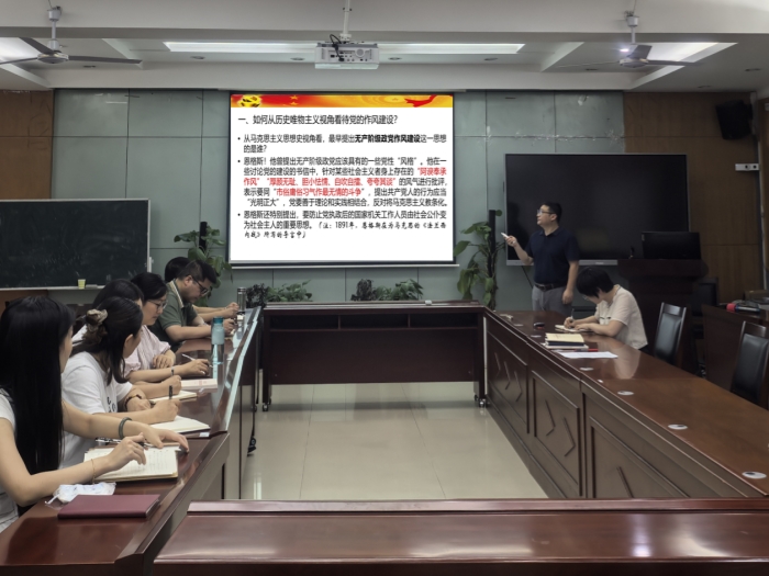 6月24日,马克思主义基本原理教研室开展“大雁”教研先锋暨“理论工作坊”研讨活动,聚焦从历史唯物主义视角解读党的作风建设,梳理“作风”意涵演变脉络,探寻理论传承与实践逻辑,旨在深化对党的作风建设理论根源的理解。