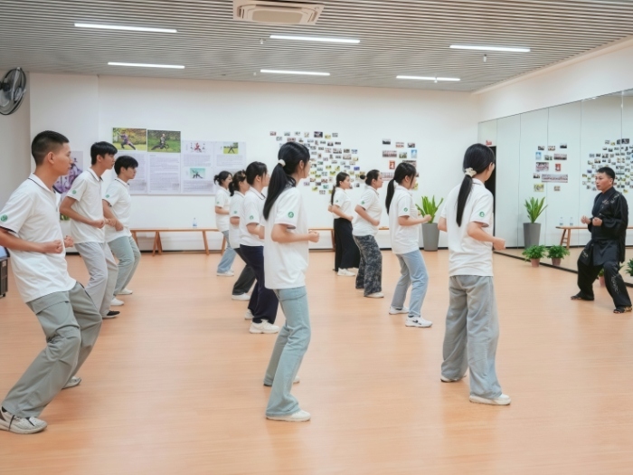 队员们深入走访了合肥市内三家风格迥异的太极拳馆。在传统拳馆,了解太极拳的千年源流;在现代综合拳馆,体验可穿戴设备辅助的精准教学法;在扎根社区的普及型拳馆,调研居民的真实需求和接受度。国家级非遗陈氏太极拳第十二代传人倪世清在与同学们交流时感慨:“太极拳源远流长,看到你们这年轻一代主动走近它,这才是真正的‘活态传承’的希望。”这份来自传承人的肯定,为实践队员们注入了强大的精神动力。