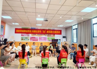 近日,安徽职业技术大学公共管理学院社区公益管理教师党支部携手光明社居新时代文明实践站,在新站高新区妇联、磨店社区妇联的指导下,共同开展光明社居守“忘”者互助小组活动。活动以“守‘忘’者”为主题,旨在为认知障碍家庭照护者搭建交流互助平台,缓解其照护压力,增强照护信心与能力。党支部教师带领学生志愿者深度参与此次活动,在实践中践行公益理念,锤炼服务技能。
