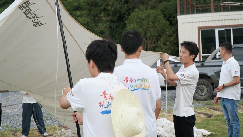 民族要振兴,乡村必振兴。乡村振兴是实现中华民族伟大复兴的一项重大任务。7月8日,实践团到达柯坦镇开展启动仪式,指导教师张莲莲和学生代表吴正冉分别作交流发言,号召同学们读万卷书行万里路,在实践活动中厚植爱农情怀,练就兴农本领。柯坦镇团委书记喻建民向团队到来表示欢迎,并介绍了柯坦镇发展现状以及注意事项。仪式结束后,团队协助镇政府完成牛王寨主题露营筹备工作,用青春的色彩为深山的夜晚点缀上了别样的星光。在活动过程中,实践团成员们接受了庐江县融媒体中心的采访,畅谈乡村振兴战略实施成效的深刻感受,纷纷表示要坚定理想信念和积极提高自身能力,勇于投身基层,以青春之火助力乡村振兴。