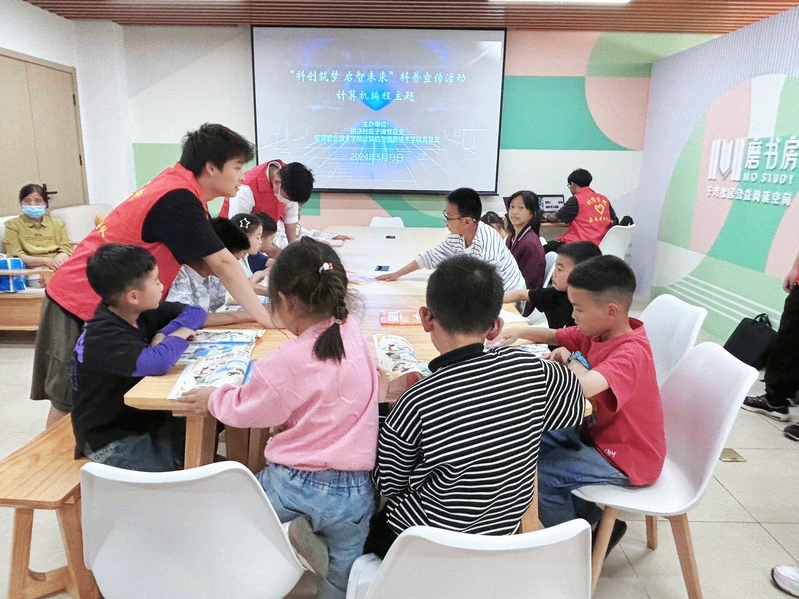 在上次的“党建+科普”进社区活动中,电子通信学生党支部积极向社区居民普及了基于51单片机的智能小车的核心原理、构造及其功能,得到了社区青少年们及家长的一致好评。为进一步推动科普教育,激发社区青少年对计算机编程领域的兴趣和热情,近日,计算机与信息技术学院再次组织师生前往磨店社区于湾社居委,成功开展了以“认知编程 青筑未来”为主题的第二期“党建+科普”进社区活动。