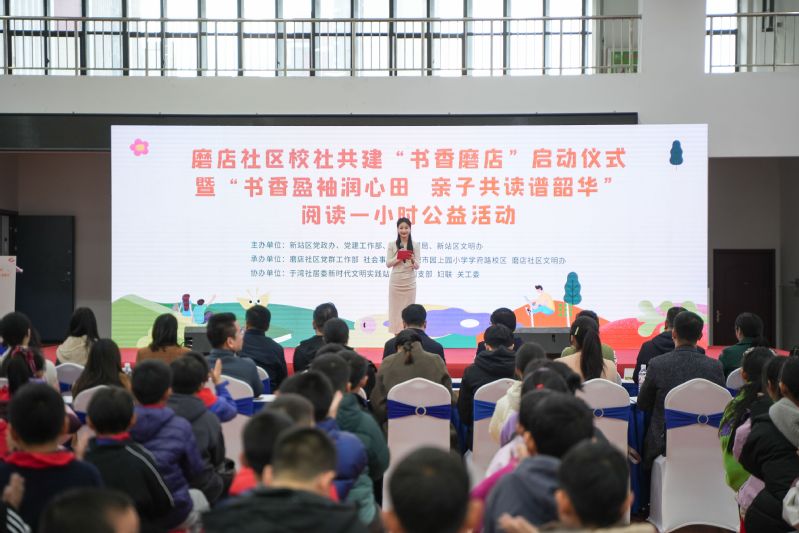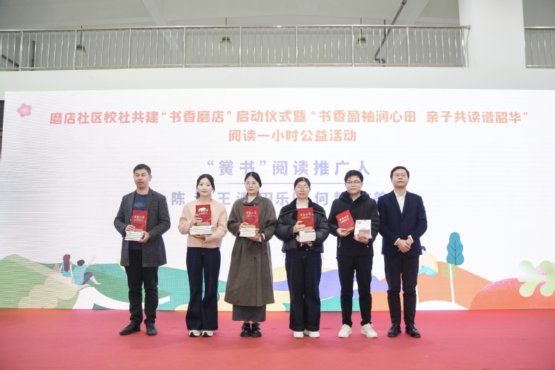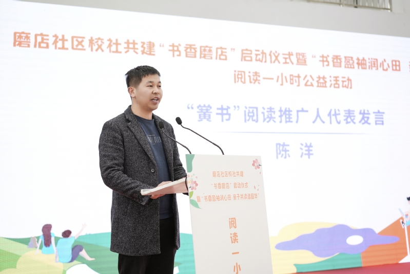11月26日,磨店社区校社共建“书香磨店”启动仪式暨“书香盈袖润心田 亲子共读谱韶华”阅读一小时公益活动在园上园小学学府路校区体育馆举行,安徽职业技术学院计算机与信息技术学院电子通信学生党支部书记陈洋受邀参加活动。