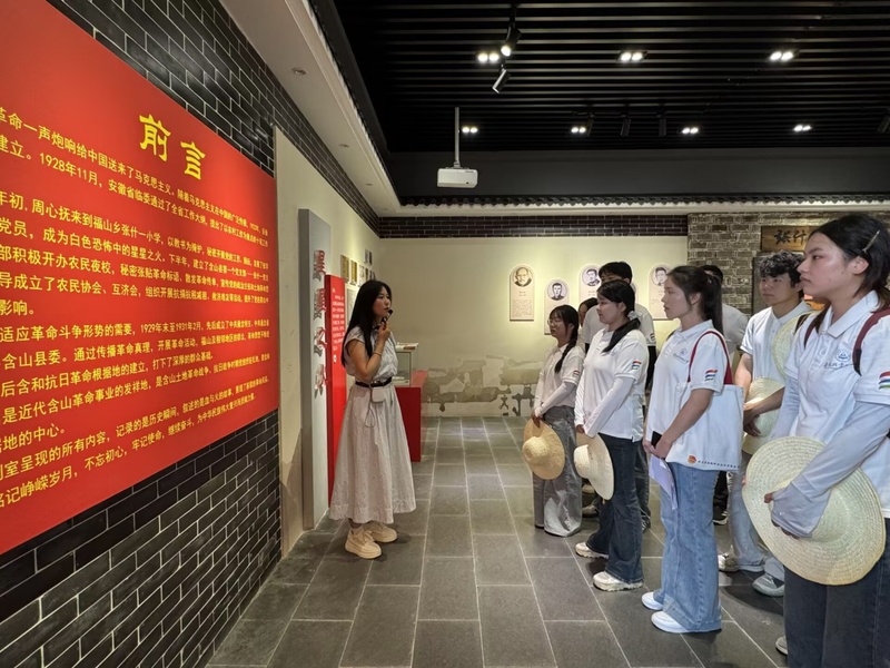 7月2日,实践团来到含山县第一个革命党支部事迹陈列馆,“星星之火”“峥嵘岁月”“燎原之势”三个篇章,生动展现了含山县第一个党支部的发展历程。每一个革命事迹,每一张革命图景,每一段革命文字,都蕴含着革命先辈们崇高的革命信念,不断激励青年学子们奋发图强,让红色精神在新征程绽放出更加绚丽的光芒。