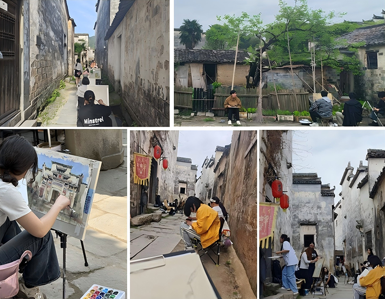 展览展出作品均是该专业2024级师生在安徽省黄山市黟县屏山村采风时创作,涵盖手绘速写、水彩场景设计、素描等多种形式,吸引了广大师生前来参观。