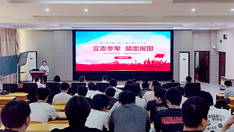 为积极响应国家征兵号召,激发青年学生参军报国热情,6月18日,信息技术学院党总支在二号教学楼216信仰报告厅组织举办“青春逐梦 携笔从戎”第五期学子讲坛。该院学生工作负责人出席活动,该院团总支、学生管理科相关工作人员、2023级辅导员、征兵形象代言人及近90名有参军意向的学生参加。