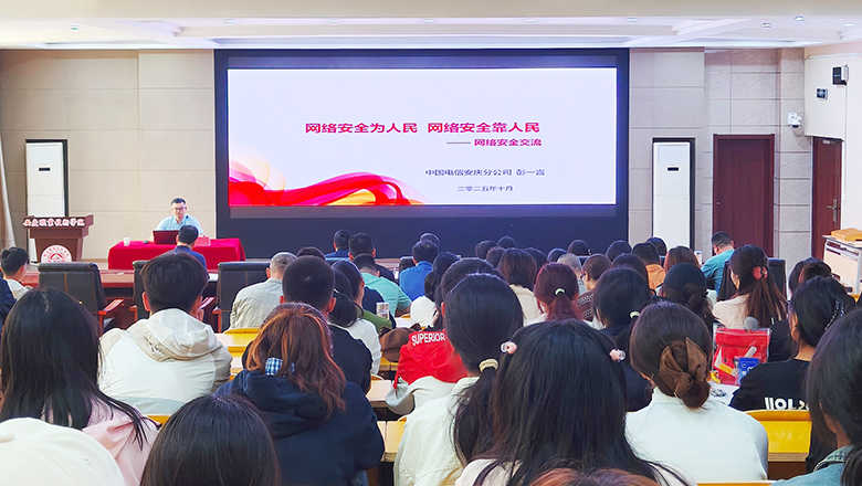 为增强师生网络安全意识,提升网络安全防护能力,10月15日下午,信息技术学院邀请全国劳动模范、中国电信安庆分公司战新产品营销中心副总经理、高级工程师彭一言在2号教学楼216信仰报告厅作题为《网络安全为人民 网络安全靠人民》的专题讲座。该院党总支书记、院长疏国会参加讲座,全体教职工及各班级学生代表共计150余人到场聆听。