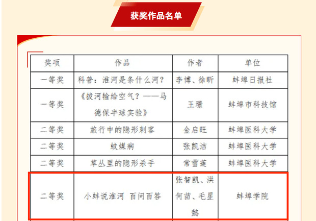 喜报|我校原创IP科普作品《小蚌说淮河 百问百答》荣获“千万IP创科普”蚌埠科普短视频大赛二等奖