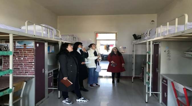 开班仪式结束以后,全体人员前往学生二公寓进行检查,就学生寝室管理和寝室文化建设进行探讨。