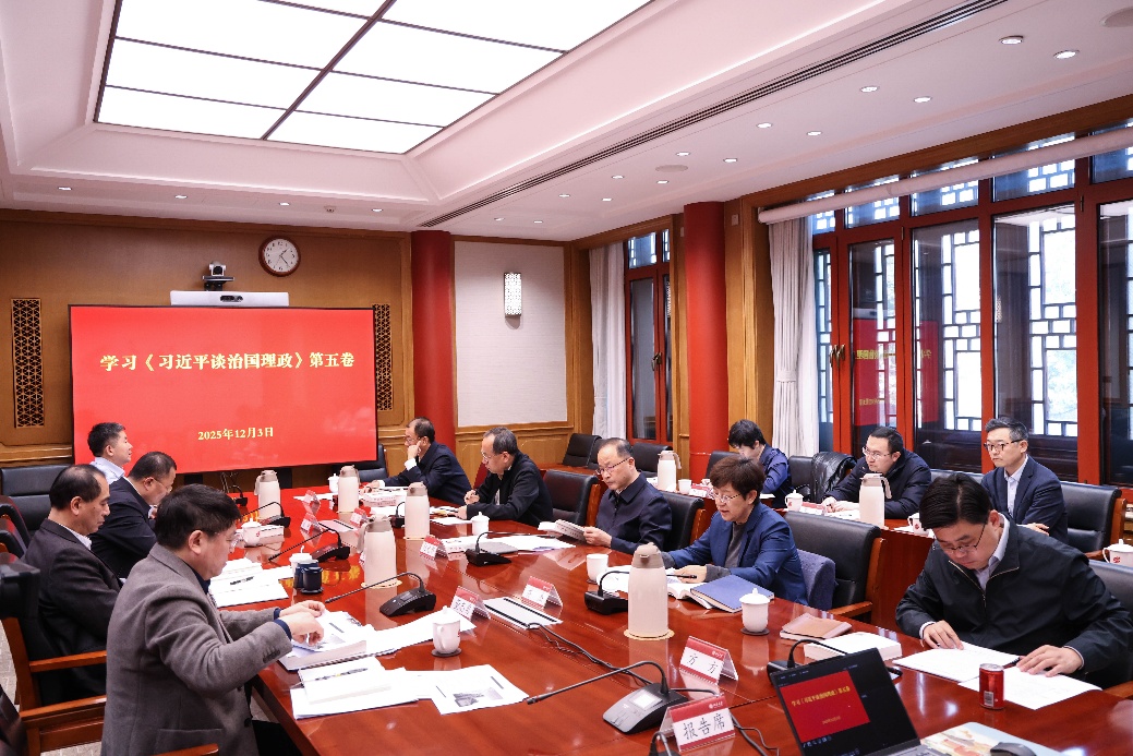 何光彩指出,学习好、领会好、贯彻好《习近平谈治国理政》第五卷,是当前和今后一个时期的重要政治任务,对加快建设教育强国、更好支撑引领中国式现代化意义重大。要坚持思想政治引领,不断深化党的创新理论武装,校领导班子成员带头认真领学,指导分管部门和所联系院系有针对性地开展学习;要将学习《习近平谈治国理政》第五卷与学习贯彻党的二十届四中全会精神紧密结合,深入落实党和国家的战略部署;要一体推进教育科技人才事业发展,加快走出一条建设中国特色、世界一流大学的新路。