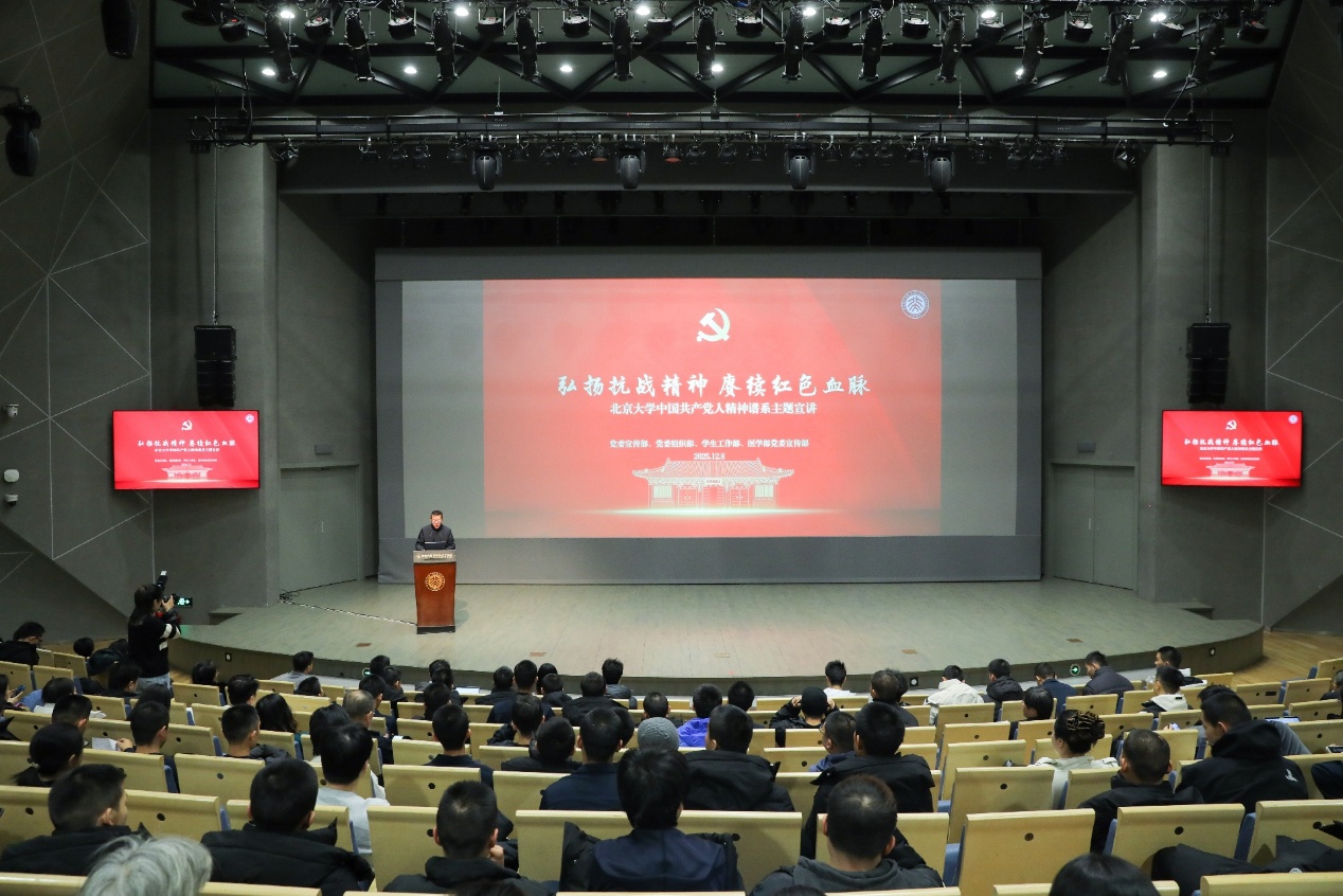在“一二·九”运动爆发90周年之际,为弘扬伟大抗战精神,传承北大红色基因,引导师生以史为鉴、埋头苦干、开创未来,2025年12月8日,由北京大学党委宣传部、党委组织部、学生工作部和医学部党委宣传部联合举办的“弘扬抗战精神,赓续红色血脉——北京大学中国共产党人精神谱系主题宣讲”在百周年纪念讲堂李莹厅举行,近300位师生聆听了宣讲。