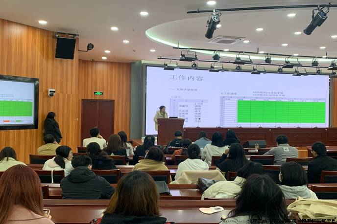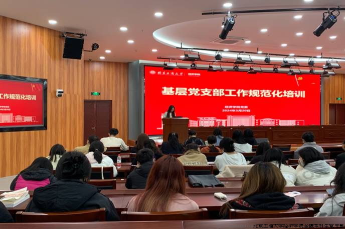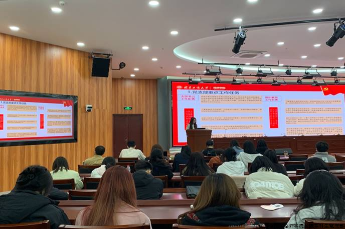 21级本科生辅导员邹雪婧对全体与会党员干部进行基层党建标准化、规范化培训。要求各党支部书记要全面贯彻落实党的方针政策,做好政治引领和意识形态工作,提升支部成员的思想政治觉悟,筑牢理想信念根基。随后针对党支部重点工作任务及工作职责、基层党支部规范化建设指标清单、“三会一课”的有关要求及注意事项、《党支部工作手册》填写说明解读以及党支部工作流程展开了详细的说明。