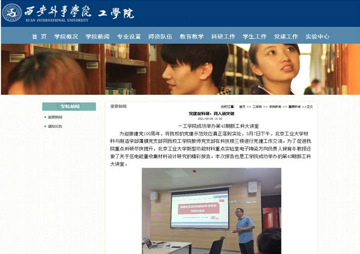 西安外事学院是首批全国党建工作示范高校培育创建单位,通过参加西安外事学院的本次工科大讲堂互动交流活动,促使我支部与兄弟单位之间在科研思维的碰撞、科研经验的传递、科研道德的教育、科研能力的训练等方面的发展,同时也促进了支部党员对“以党建促科研”工作的认识和理解,激发了支部党员积极投入高水平学科建设。