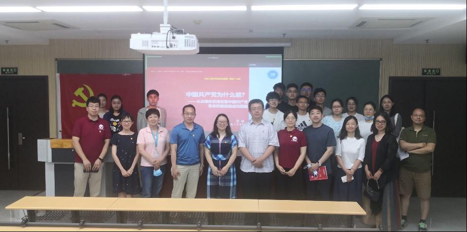 2021年6月28日下午,城市建设学部教师市政党支部联合教师建环党支部、教师建筑党支部、本科市政党支部和20级硕士市政水利党支部,邀请学校党史宣讲团的孙逊老师,在城建楼212会议室和线上腾讯会议室同步为党员作了题为《中国共产党为什么能?——从治理能力看中国共产党革命和建设的成功经验》党史宣讲报告。