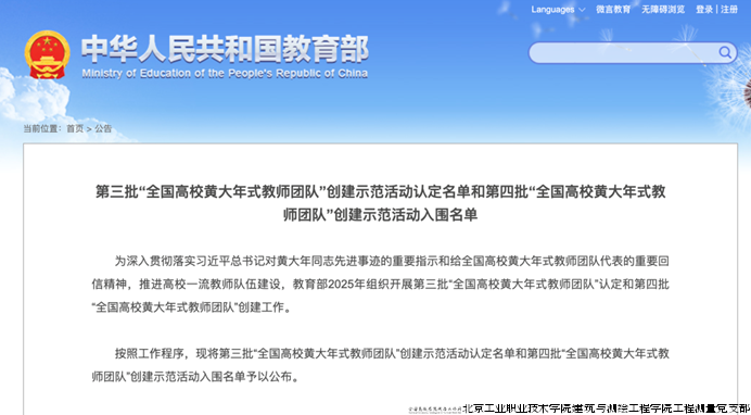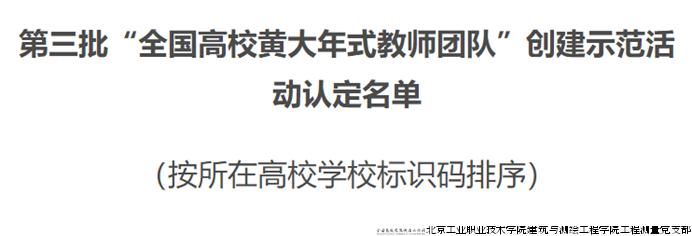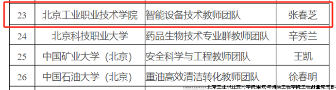 近日,教育部公布了第三批“全国高校黄大年式教师团队”认定名单和第四批创建示范活动入围名单。柳长安院长带领的“北斗时空信息应用技术教师团队” 成功入围第四批创建示范名单。北京工业职业技术学院机电工程学院张春芝教授带领的“智能设备技术教师团队” 成功入选第三批认定名单。