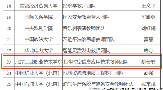 北工院北斗时空信息应用技术教师团队成功入围第四批“全国高校黄大年式教师团队”