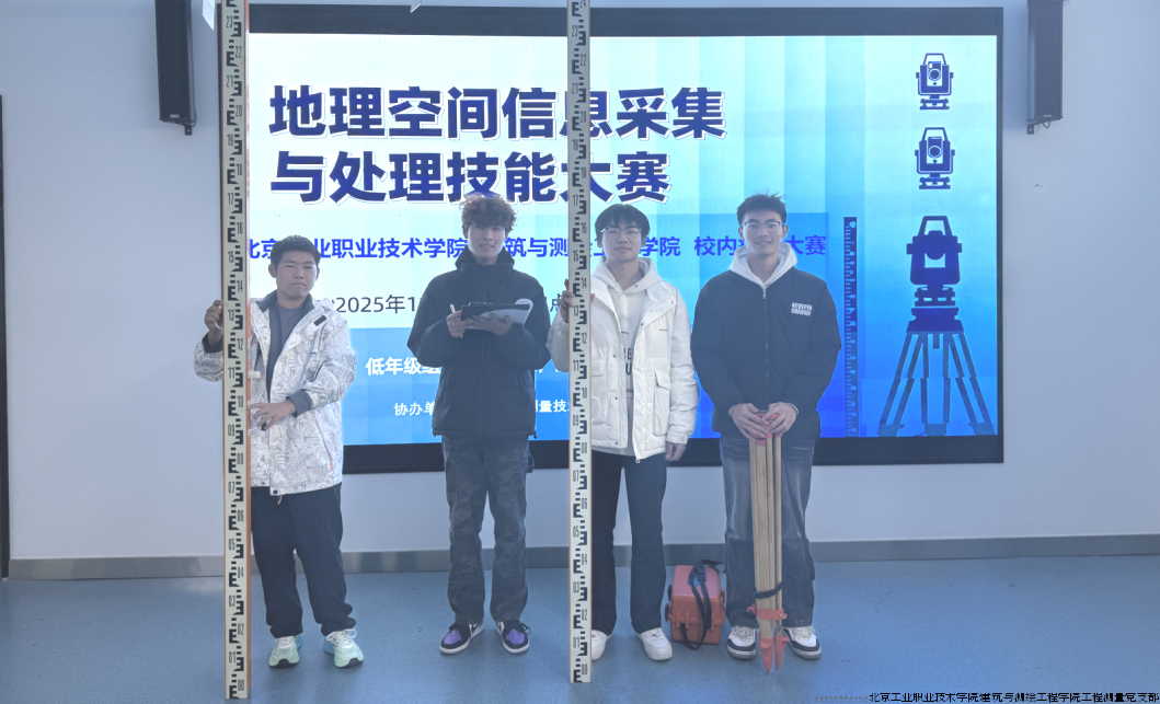 11 月 21 日,2025 年北京工业职业技术学院校内技能大赛地理空间信息采集与处理赛项在校内成功举办。本次赛事由学校主办、北京起迈测量技术有限公司协办完成,工程测量技术专业、无人机测绘专业十余支队伍参赛,近 60 名学生同台竞技,在校园内营造了浓厚的专业技能竞技氛围。