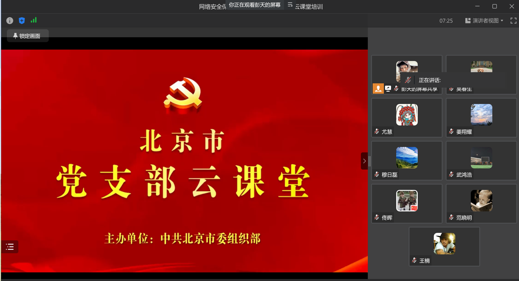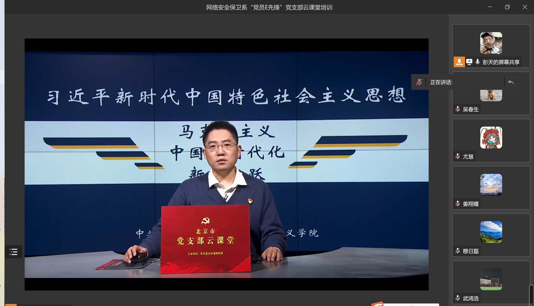 为进一步加强和巩固党支部标准化规范化成果,切实提升党建工作质量,1月10日,网络安全保卫系依托党建工作平台——党员e先锋“党支部云课堂”,以观看培训直播和往期回顾形式,组织全系教师干部参加线上培训。