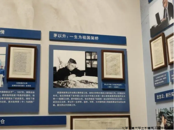 支部党员跟随展馆讲解人员重点参观了走进“共和国脊梁——中国科学家博物馆馆藏精品展”,该精品展共计展示了190余位科学家的400余件(套)实物、400余张珍贵图片。支部成员逐一驻足观看,聆听那一张张照片、一件件实物背后的感人故事,用心感悟“爱国、创新、求实、奉献、协同、育人”的科学家精神的深刻内涵,也被科学家们不畏艰辛、矢志报国的爱国情怀所深深感染。支部成员重点学习了茅以升老校长的生平事迹,茅老的一生都在为祖国架桥,不仅为我国的桥梁工程建筑事业作出了杰出贡献,还潜心教育事业,将知识的火种传递给广大青年学子,引领广大青年学子架起人生奋斗之桥。