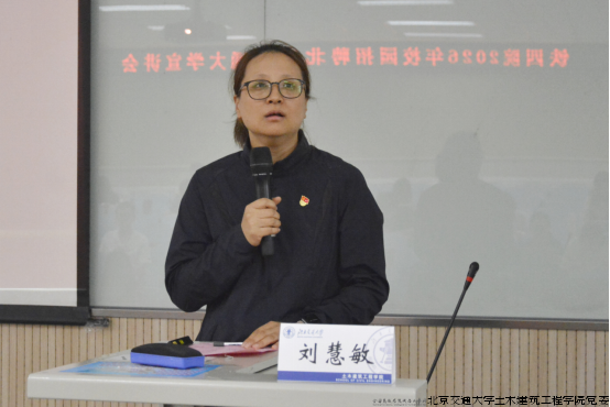 马克思主义学院团委书记刘慧敏对参赛选手的综合表现进行点评。刘慧敏老师高度肯定大赛特色,对选手们能够紧扣土木专业实践,将现实案例融入党课,实现"廉洁教育与学科特色的深度互嵌"表达了肯定。同时建议进一步强化理论阐释的穿透力,创新互动形式以提升育人实效,为党员教育注入新动能。