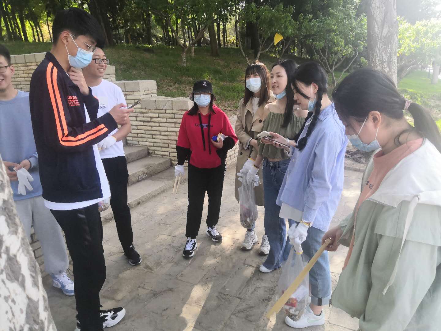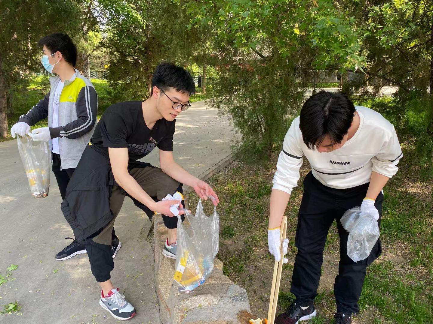 迟日江山丽,春风花草香。泥融飞燕子,沙暖睡鸳鸯。下午3点,参与支部活动的13人在元大都遗址公园集合完毕,陆雨辰同学向大家讲解了活动规则,并为大家发放用具。活动正式开始后,13人分为3组,沿着元大都遗址公园捡拾垃圾,并沿途向行人宣传垃圾分类知识。活动中,同学们手持垃圾袋,弯腰仔细找寻着沿途的垃圾,尤其是绿化带中丢弃的烟头、纸片、包装袋等,隐藏在灌木带里的垃圾也不放过。有些炎热的天气丝毫没有影响大家美化环境的热情,不一会手中的垃圾袋都变得鼓了起来,每一位同学都展现了他们不怕苦、不怕累的精神风貌和保护环境、珍视自然的决心。按照活动规则,第一名的小组还获得了多肉绿植的奖励。