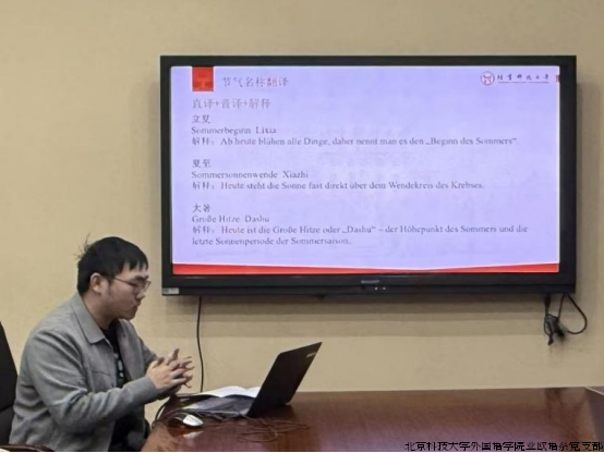 近期,由北京科技大学外国语学院亚欧语系德语支部主办的第六期“小语种·大视野”研究生论坛在外语楼309教室顺利举办。本次活动聚焦“理解当代中国”,旨在引导学生在专业学习中立足中国、放眼世界,以跨文化视角生动阐释中国故事背后的思想力量与文化智慧。