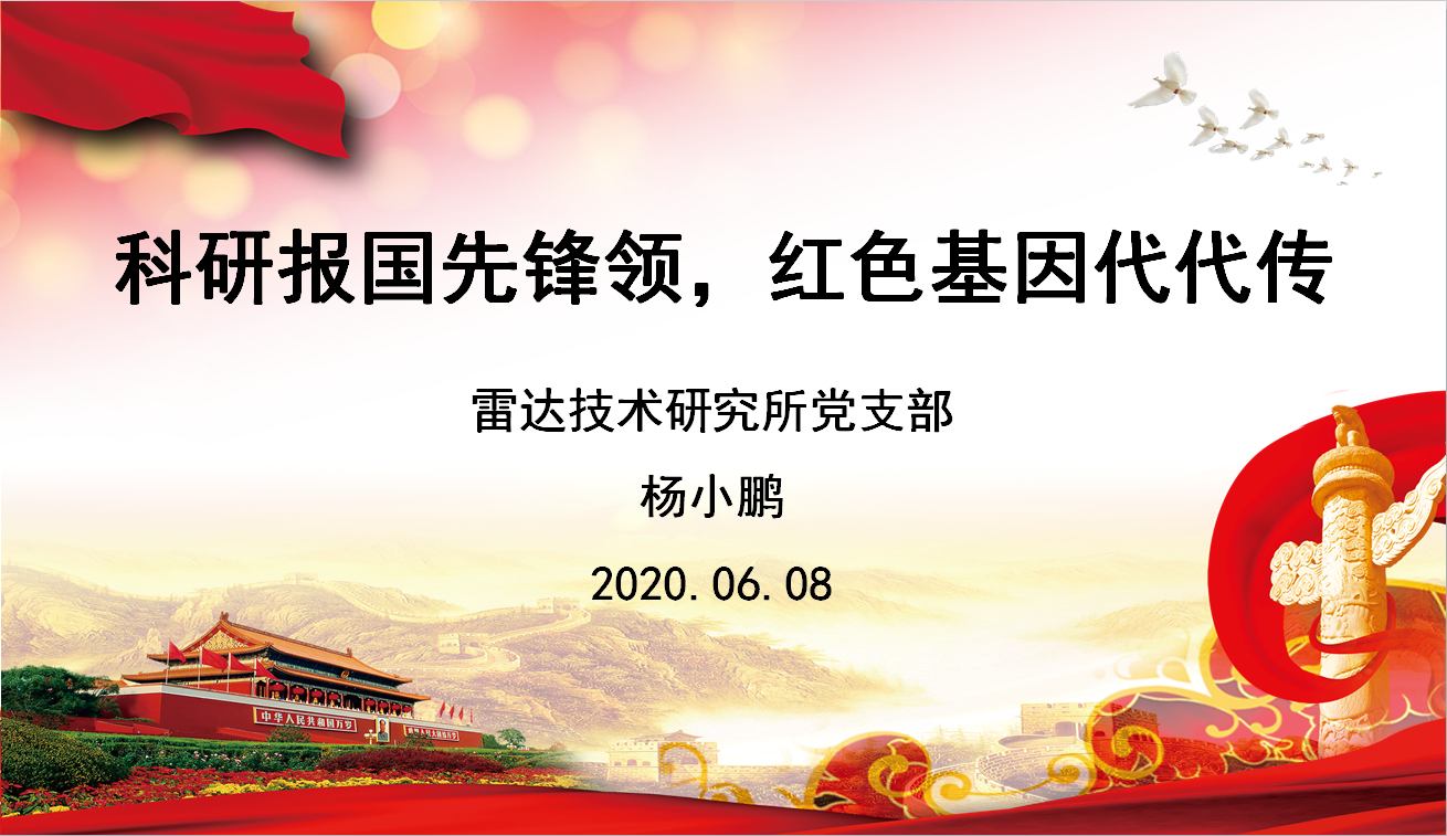 为深入学习贯彻习近平新时代中国特色社会主义思想,巩固“不忘初心、牢记使命”主题教育成果,贯彻落实《中国共产党支部工作条例(试行)》中对党组织书记面向基层讲党课的要求,发挥疫情期间基层党组织书记的“头雁效应”,提高党务工作能力,同时激励支部党员坚定社会主义理想信念,以优异的成绩迎接中国共产党成立99周年及北京理工大学建校80周年,根据学院党委安排,雷达技术研究所党支部书记杨小鹏同志于2020年6月参加了“书记在线”党建微讲堂活动,以党建微讲堂为载体,聚焦党员普遍关注的时政热点问题、理论经典问题、党建工作难点问题,参与录制了微党课视频,开启党建“双线双馨”工作模式,即线上线下同时发力,德育学育合力育人,创新党员日常教育模式,推进“智慧党建”,实现党课智慧化、灵活化、亲切化,提升党建工作现代化水平,增强党支部建设质量,全面提升“样板支部”建设力度。杨小鹏书记在微党课中讲述了雷达技术研究所的发展历程、科研成就,展示了雷达技术研究所党支部取得的各项荣誉,介绍了支部举办的特色党建活动、党员先进事迹,还分享了党支部在疫情下积极开展工作的经验。