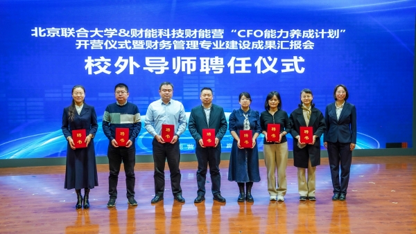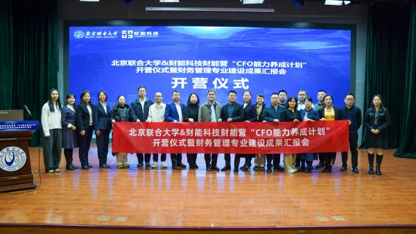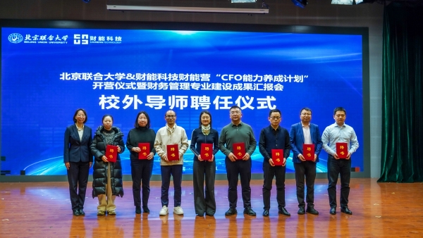 11月28日下午,北京联合大学与财能科技联合举办的第八届“财能营——CFO能力养成计划”开营仪式在北京联合大学综实B小剧场隆重举行。本次活动同期举办了财务管理专业建设成果汇报会,全面展示了校企双方在深化产教融合、共育数智化财经人才方面取得的丰硕成果。