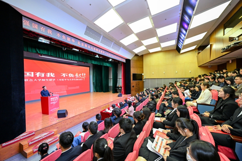 11月28日,“强国有我 不负韶华”北京联合大学师生研学《习近平与大学生朋友们》分享会在我校艺术学院小剧场召开。团中央宣传部一级巡视员皮钧,中国青年出版总社党委副书记、纪委书记潘昊,团中央宣传部文化处处长张宇,北京团市委宣传部部长林思聪,校党委书记楚国清出席分享会。活动由校党委副书记李德煌主持。团中央、中国青年出版总社、团市委相关部门负责同志,部分在京兄弟高校团委负责人,以及学校相关职能部门和学院负责人,参与导读工作的全体团干部和团员青年代表参加活动。