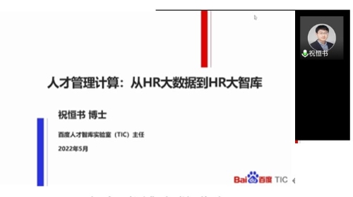 5月8日上午,百度人才智库主任、北京市高端领军人才正高级工程师祝恒书博士应邀与我系师生相约“云课堂”,为大家带来题为“人才管理计算:从HR大数据到HR大智库”的讲座,探讨了大数据和人工智能如何应用并改善企业人力资源管理的相关内容。