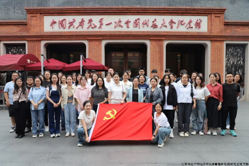 为深入推动习近平新时代中国特色社会主义思想走深走实,落实立德树人根本任务,弘扬伟大建党精神,引导广大师生党员赓续红色血脉,凝聚奋进力量,北京师范大学经济与工商管理学院党委于2024年9月20日至22日组织师生党员代表前往上海和浙江嘉兴开展“红船精神照亮梦想,实践担当铸就未来”实践研学活动。经济与资源管理研究生党支部委员会鲁煜晨、李璐、邹晓蔓、孙茹怡、姬向利等委员全程参加实践研学活动。
