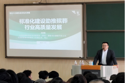 2024年11月6日下午,生命文化学院在大兴校区成功举办了第53期生命文化大讲堂。本次大讲堂以《标准化建设助推殡葬行业高质量发展》为主题,由现任全国殡葬标准化技术委员会(委员)副秘书长兼秘书处主任、中国殡葬协会标准化工作部主任、高级工程师王志强主讲,旨在提升同学们专业素养水平,深刻感受殡葬行业标准化发展。生命文化学院2023级、2024级学生积极踊跃参加了此次活动。