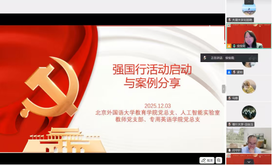 2025年4月16日,北京外国语大学“强国行”专项行动——“教育强国·外语担当:AI赋能新时代外语教育变革”主题党日活动以线上、线下方式同步举行。