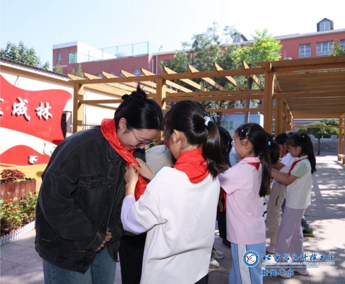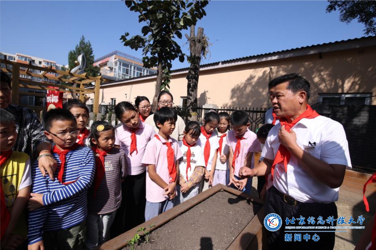 在活动开始前,永泰小学少先队员代表为马院师生以及劳动实践专家佩戴红领巾。阳光下,红领巾随风轻扬,现场响起热烈掌声,浓浓的敬意与仪式感在“共建小菜园”前迅速升腾,为接下来的共建劳动营造了温馨而庄重的氛围。