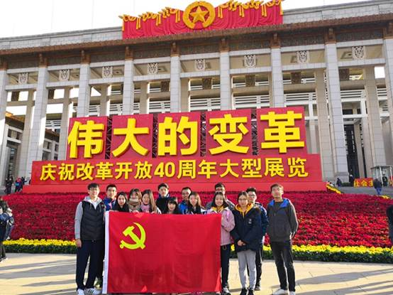 2018年是全面贯彻落实党的十九大精神的开局之年,是决胜全面建成小康社会的关键一年,是改革开放40周年。为全面感受改革开放40周年来伟大祖国辉煌的历史性成就与变革,坚定不忘初心跟党走的理想信念,进一步增强“四个意识”,坚定“四个自信”,提升实践育人实效,增强党支部凝聚力与战斗力,强化党支部成员理论素养,2018年11月17日上午,经济管理学院本科2017、2018级联合党支部组织支部成员前往国家博物馆,参观“伟大的变革——庆祝改革开放40周年大型展览”。
